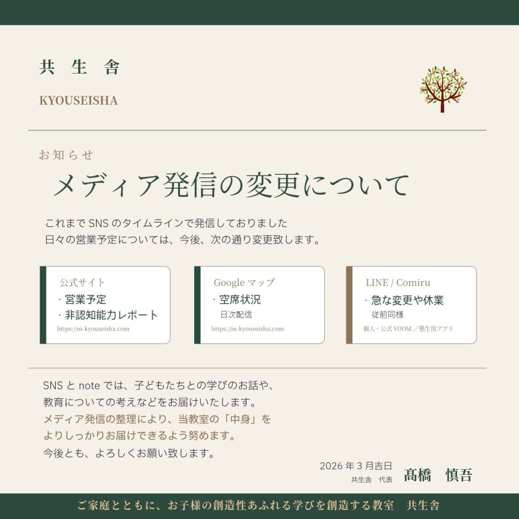 共生舎はこれからも、ご家庭とともに、